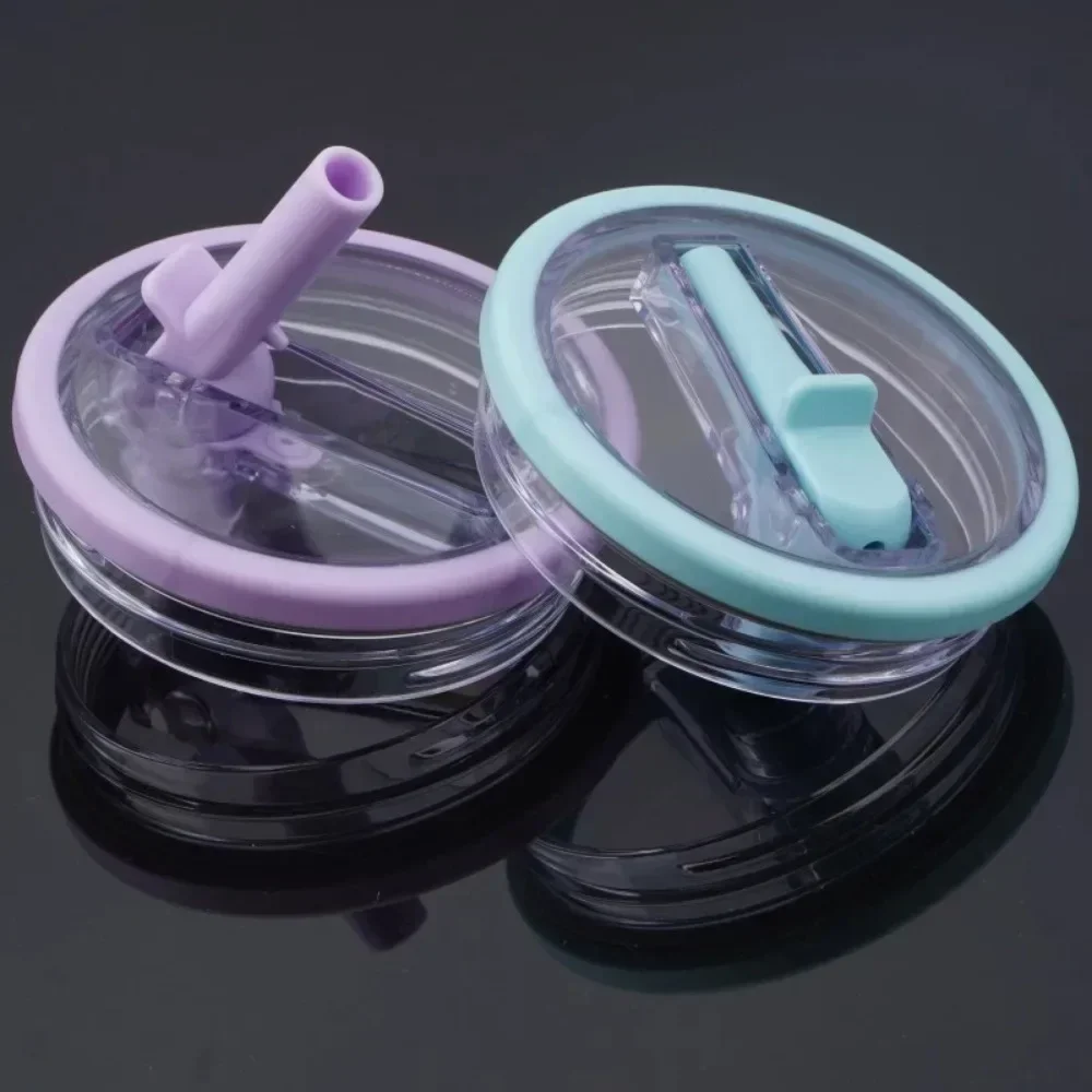 Spill-proof replacement cup cover with spiral straw design for Stanley tumblers and travel cups.